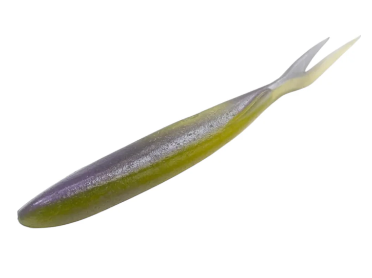 In addition to the VTS 5 V-Tail is a swimming fluke style bait designed to be twitched or retrieved in a straight swimming motion, or as a hybrid of the two! Use a non-weighted hook for the best action! When rod action is applied to a no-sinker rig, it jumps up suddenly, and continuous twitching creates a panic action in all directions.