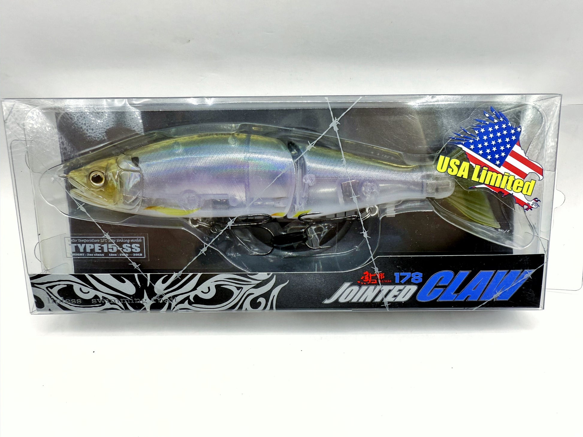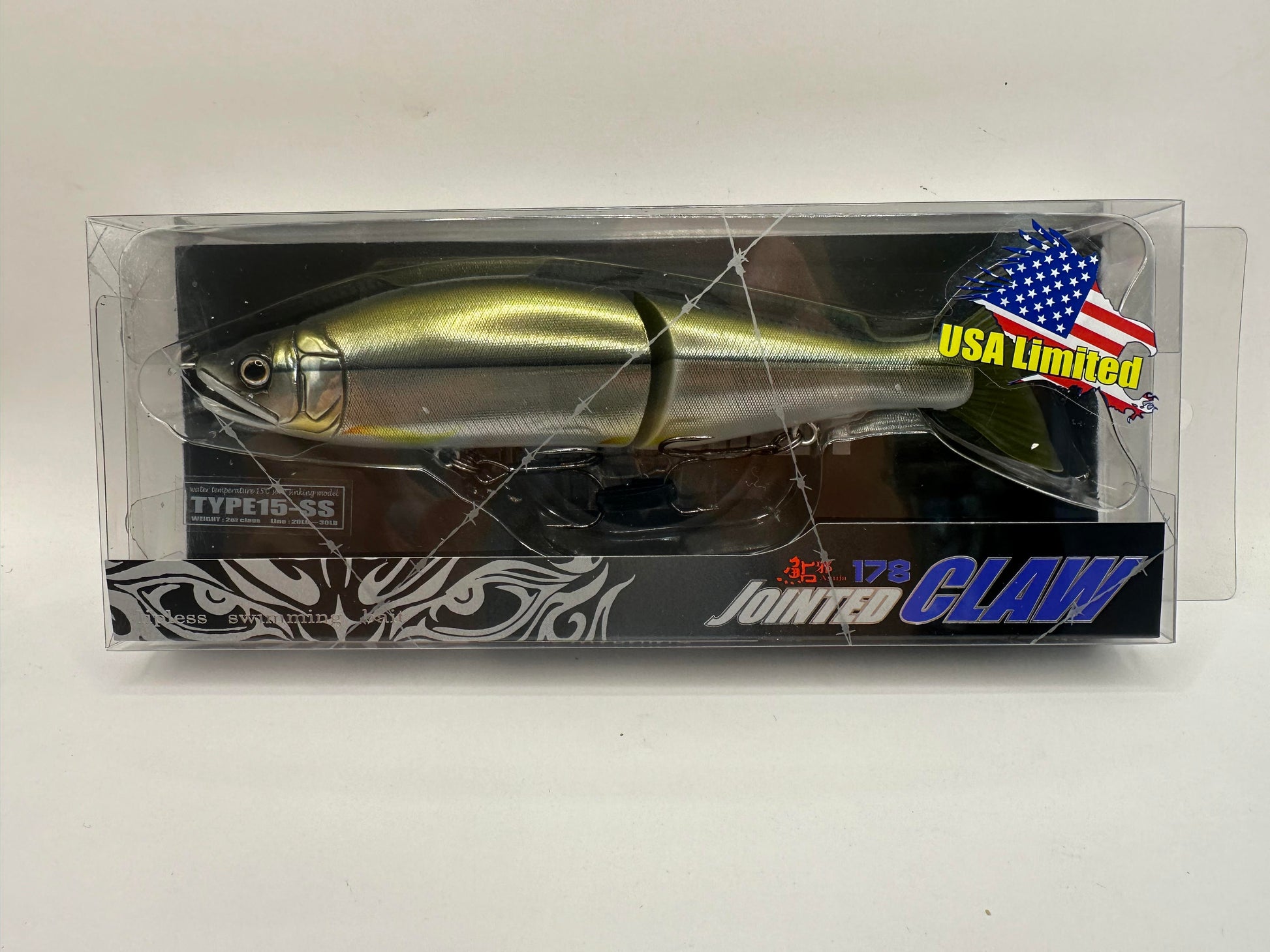 The Jointed Claw is a hard bodied, jointed swimbait which displays a wide "S" action swimming motion. Gan Craft designed the Jointed Claw to target big bass providing a large profile capable of imitating only the largest forage species such as trout, shad and hitch. Combining the realistic appearance, large size and seductive swimming action, the 178 size delivers the ideal presentation for hunting down giant bass.
