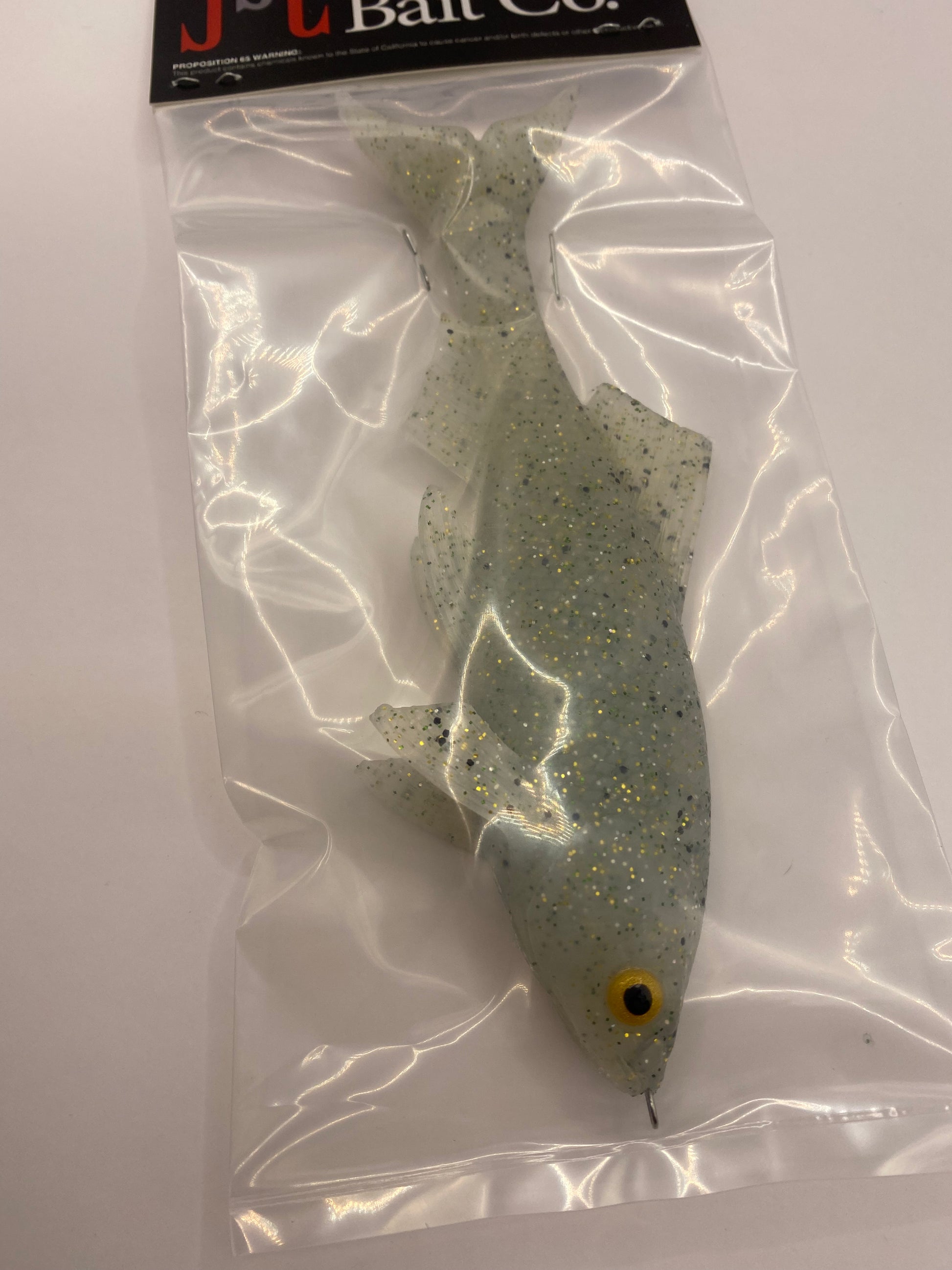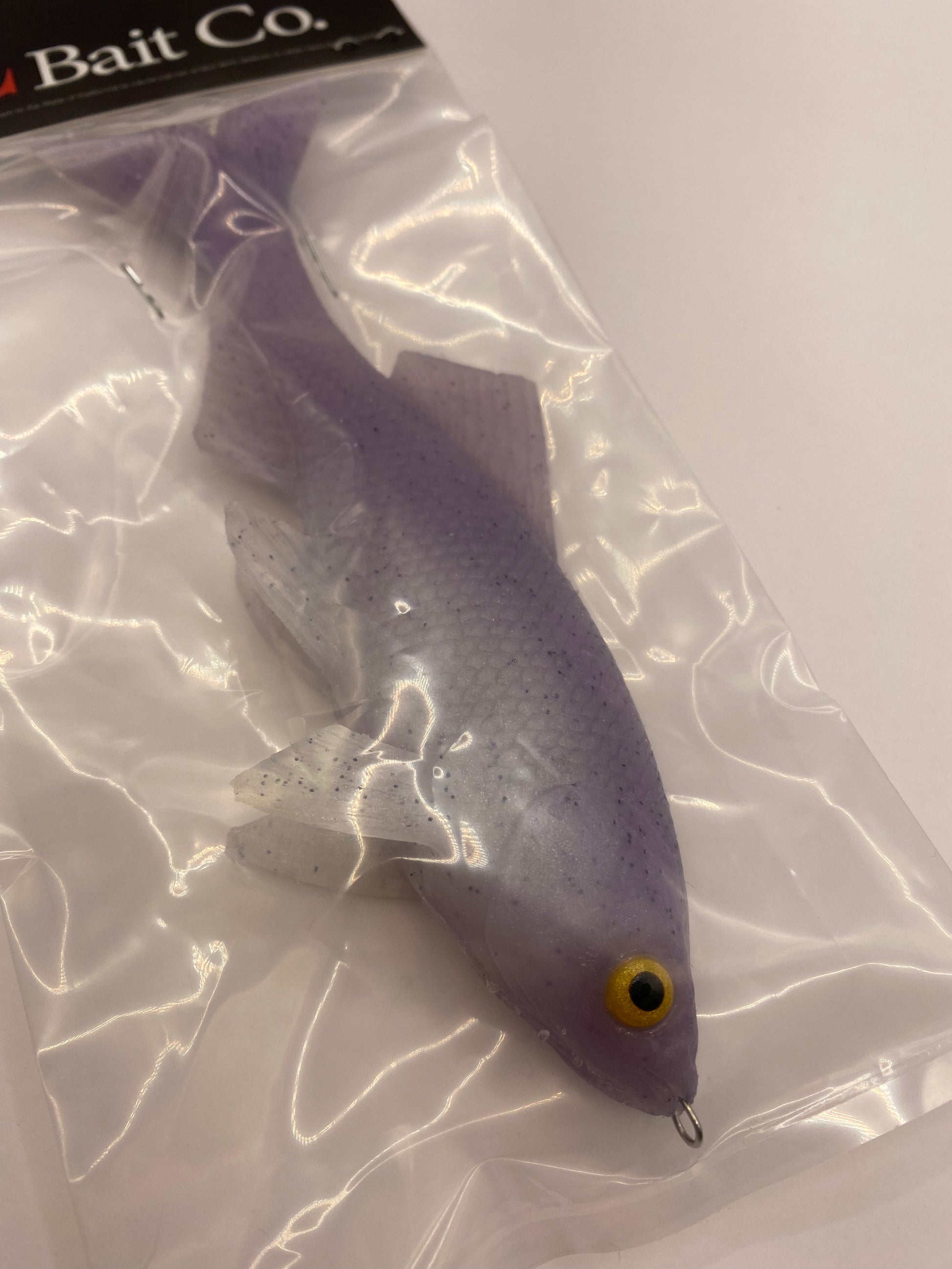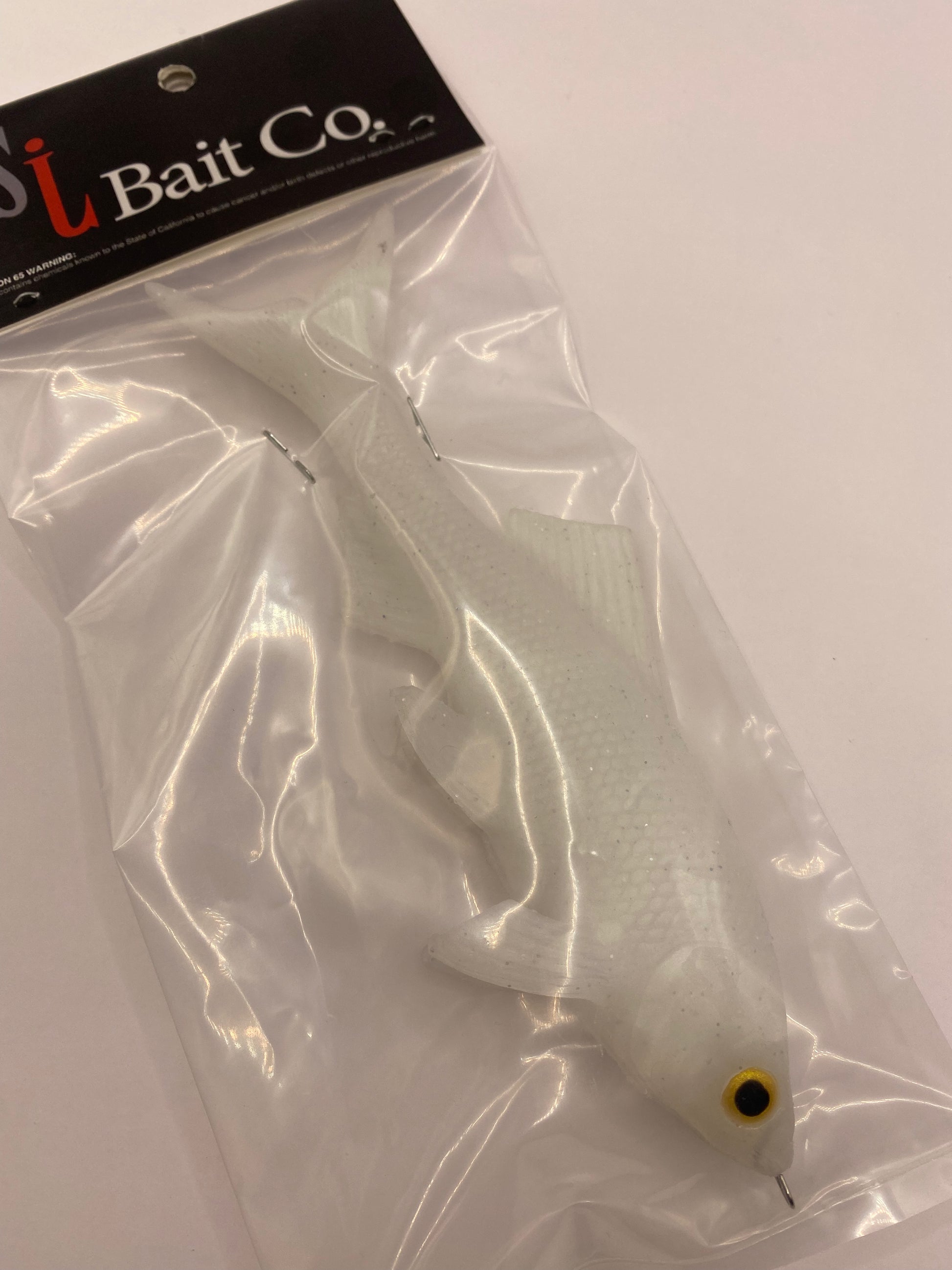 Silicone swimbait, 1.9 oz weight, 6 1/2 inches length.