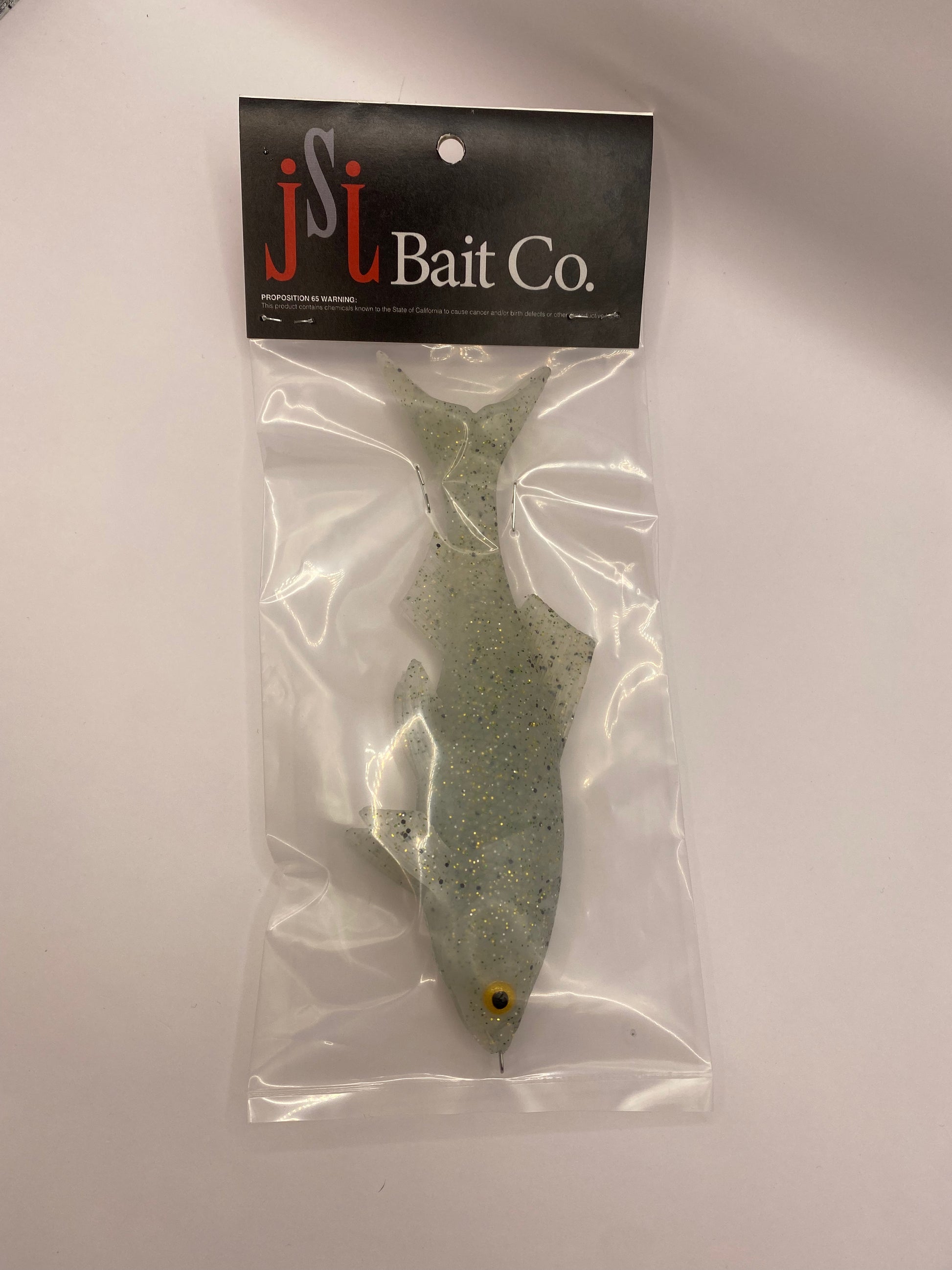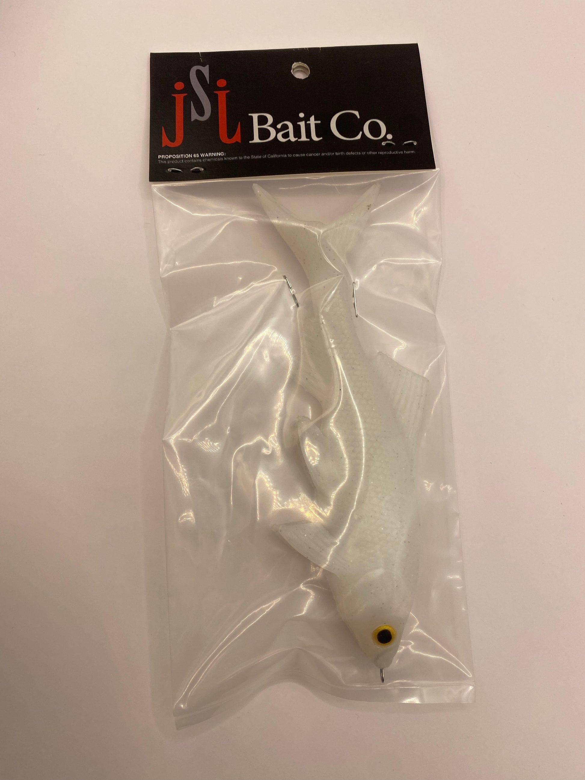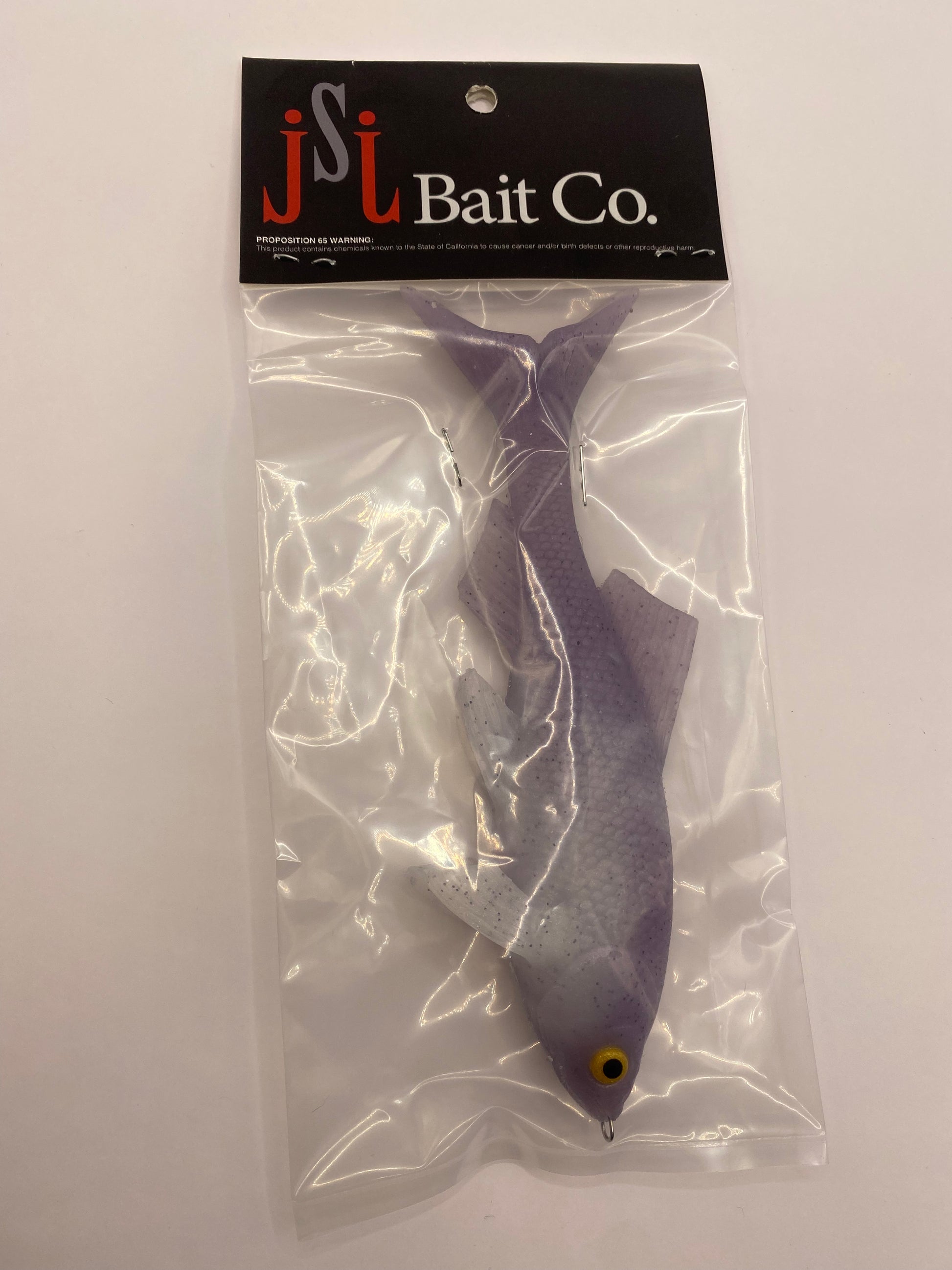 Silicone swimbait, 1.9 oz weight, 6 1/2 inches length.